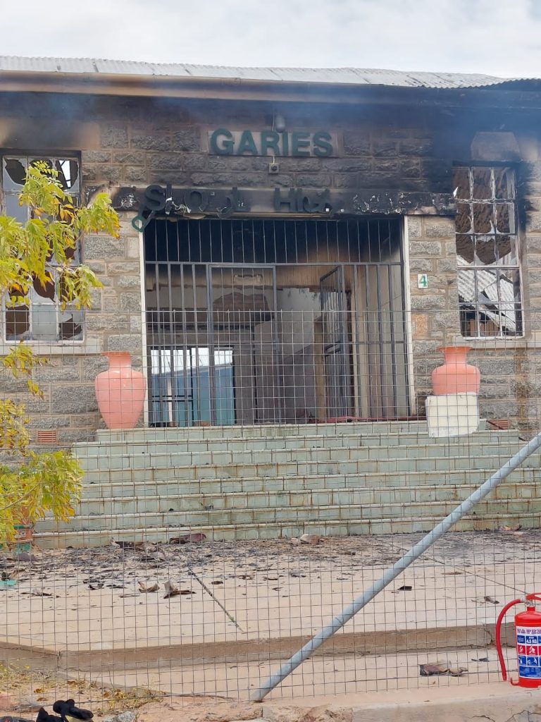 “Die Hoërskool Garies akkommodeer altesaam 216 leerders (wat 21 graad 12’s insluit) en 11 opvoeders. Die skoolkoshuis akkommodeer 136 leerders – 73 meisies en 63 seuns. Daar is ook opgemerk dat antwoordstelle, leer- en onderrigondersteuningsmateriaal en meubels deur die brand vernietig is.”