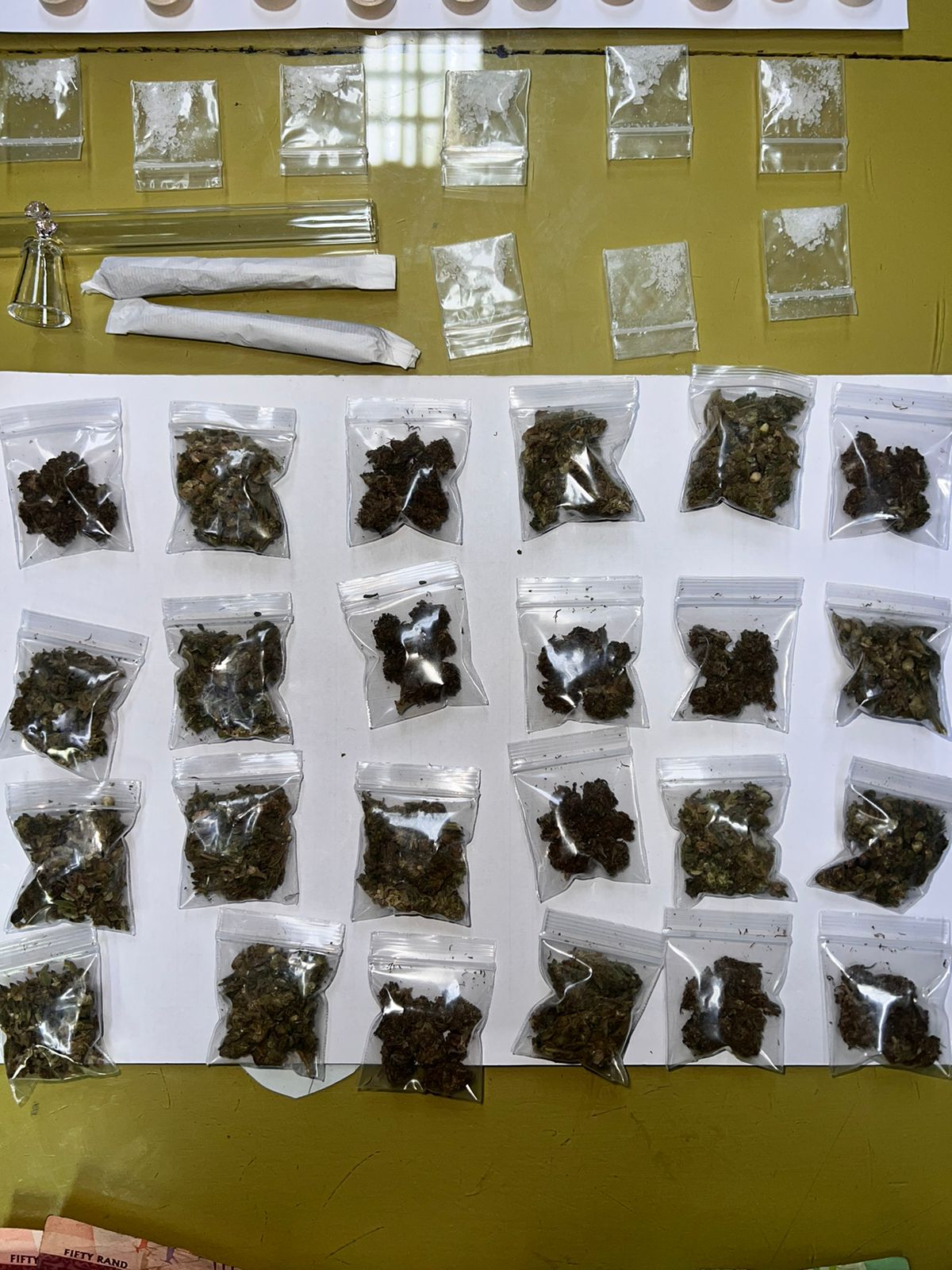 ’n 26-jarige verdagte is gearresteer en dagga ter waarde van R61 700 is gekonfiskeer asook geld wat vermoedelik die opbrengs van misdaad is.