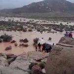 Verder word beweer dat ses individue in ‘n voertuig gery het, met twee mense wat ongedeerd gevind is, terwyl vier mense steeds vermis word en nog opgespoor moet word.