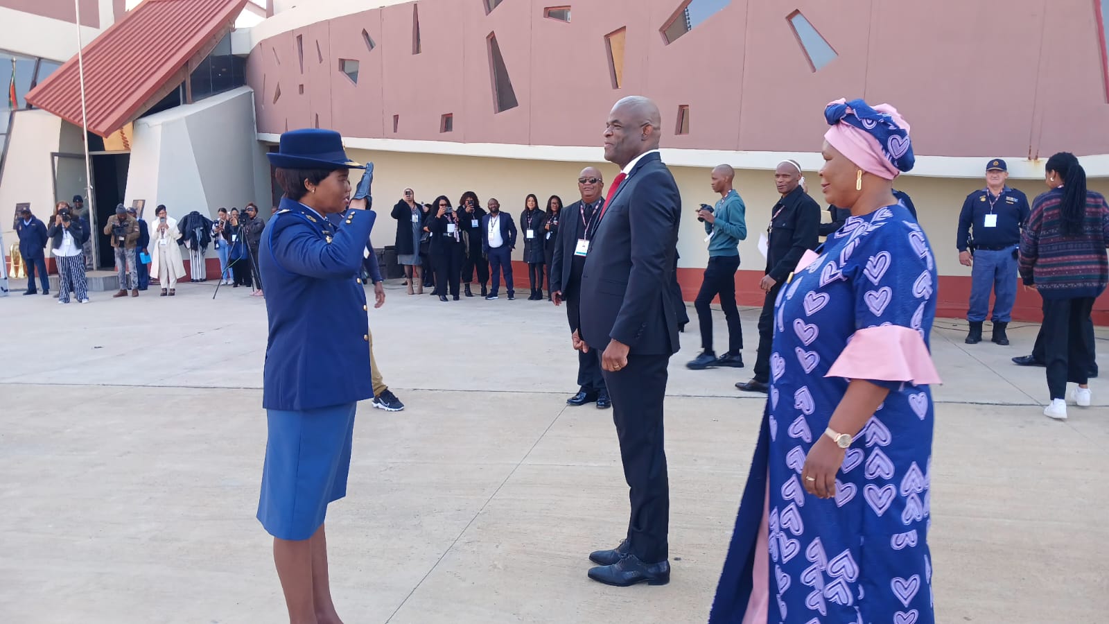 “Aanwesig is die provinsiale kommissaris, luitenant-generaal Koliswa Otola, vergesel deur die waarnemende adjunk-provinsiale kommissaris vir misdaadopsporing, generaal-majoor Jacques Raymond. Die verkose premier, Dr Zamani Saul en sy gevolg is deur die provinsiale kommissaris van die Noord-Kaap, luitenant-generaal Koliswa Otola, ontvang en ingelui,” het die Noord- Kaapse polisiewoordvoerder Luitenant Kolonel Sergio Kock gesê.