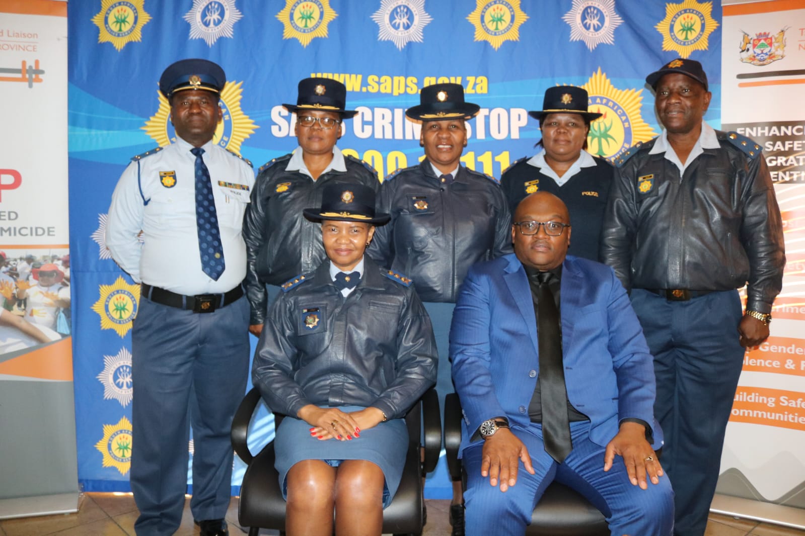 Die Voorsitter van die Provinsiale Polisieraad, Mnr Tebogo Molapo en die Adjunk Provinsiale Sekretaris, Me Helen Jack het ook die ontmoeting en groetsessie bygewoon.