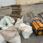 Die polisie het ook beslag gelê op sakke met moontlike diamantdraende gruis, kragopwekkers, domkraghamers en ander vermeende mynboutoerusting en -gereedskap wat vir onwettige mynaktiwiteite gebruik word.