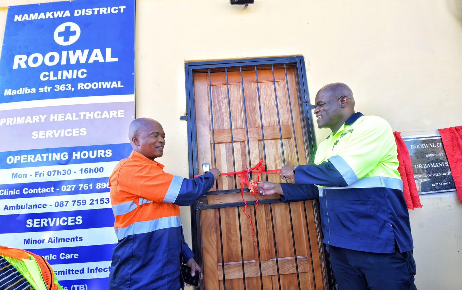 Die Premier van die Noord-Kaap, Dr. Zamani Saul tesame met die LUR vir Gesondheid in die provinsie, Maruping Lekwene het Dinsdag, 14 Maart 2024. die opgeknapte Rooiwal kliniek ge-open.