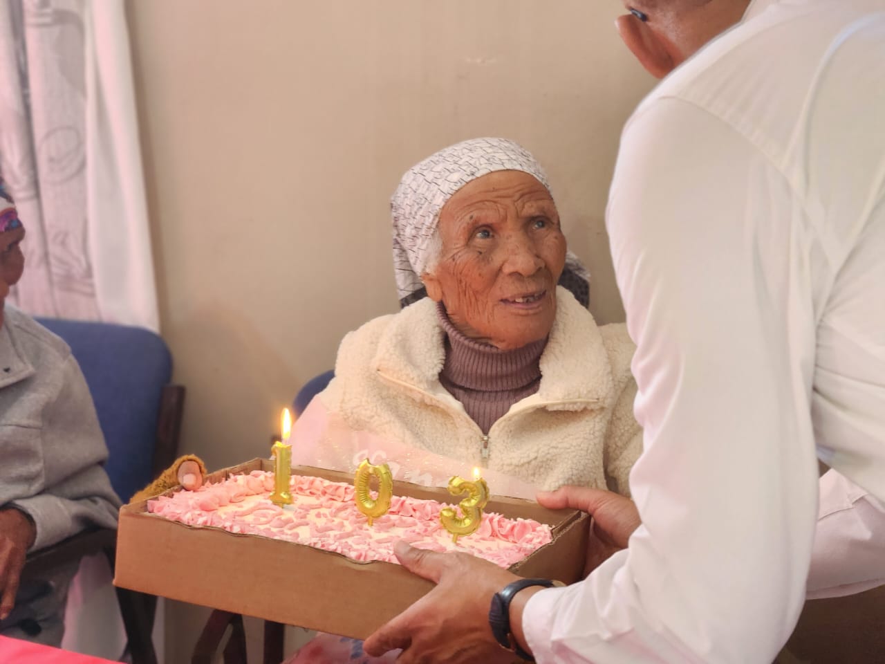 Komaggas– Vandag vier Ouma Catharine Adams, ‘n geliefde inwoner van Komaggas, haar 103de verjaarsdag te midde van groot vreugde en vieringe by die Sonskyn Bejaardeklub. Ouma Catharine is bekend vir haar vriendelike gesindheid en haar toegewydheid aan die gemeenskap, veral as ‘n lid van die Sonskyn Bejaardeklub vir die afgelope 16 jaar.