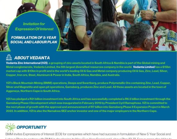 Vedanta Zinc International nooi betroubare maatskappye uit om met Black Mountain Mine saam te werk