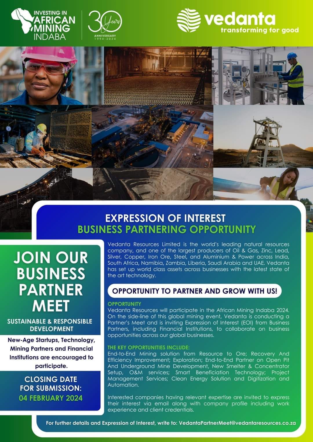 For further details and Expression of Interest, contact us at VedantaPartnerMeet@vedantaresources.co.za.