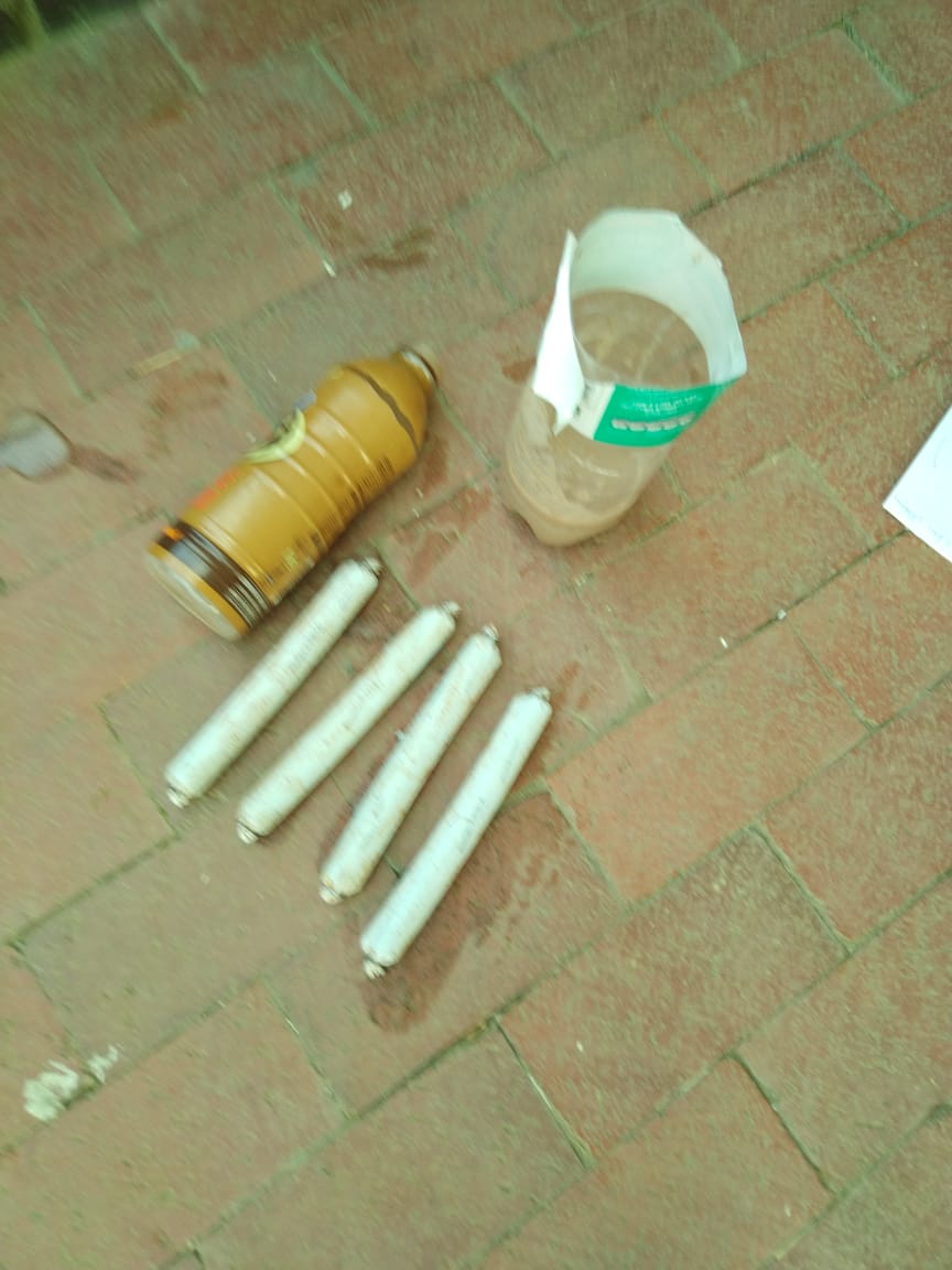 Die vier buise plofstofpoeier is versteek in ‘n bottel gevul met Mageu gevind.